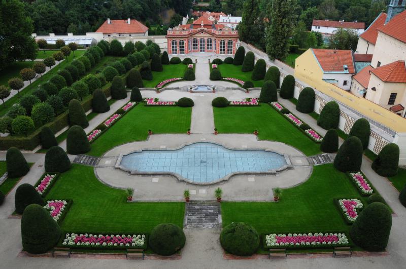 А вот дворцовые сады (Palacove zahrady), спускающиеся террасами ниже замковых стен, наоборот - крайне живописны. Всего здесь пять маленьких парков с небольшими павильонами, двое старых ворот (одни с площади, другие с улицы Valdstejnska), лоджия Sala terrena с росписями и лепниной, террасы виноградных лоз, отличные панорамы и выход к Пражскому Граду через Jizni zahrady. Здесь можно побывать на бесплатных концертах, которые проходят в осенние месяцы, полюбоваться искусственной сталактитовой пещерой, водоемом с рыбками, мраморным фонтаном с бронзовой статуей Венеры и галереей бронзовых скульптур Адриена де Врие. В летнее время в зеленой зоне проводятся театральные представления и устраиваются концерты. Сады открыты ежедневно: в апреле - с 9:00 до 18:00, в августе и октябре - с 10:00 до 18:00, в мае и сентябре - до 19:00, в июне и июле - до 21:00, цена билета - 80 CZK.