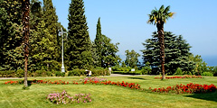 - живописный парк, заложенный в 30-е годы XIX века, украшенный беседками и прудами, из которого открываются великолепные виды на дворец и море, сейчас в нем насчитывается около 400 разновидностей растений.