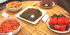 Кореи мало похожа на кухню соседних Японии и Китая, хотя и схожа обилием острых блюд, рыбы и свежих овощей. Основа питания корейцев - рис во всех его видах и способах приготовления. Это основа практически любой трапезы, все остальные блюда рассматриваются лишь как добавки к рису. Наиболее популярные блюда - пресная рисовая каша "пап", отбивные рисовые хлебцы "чхальток" или "тток", особый плов "пибимпап", сандвич из риса, овощей и омлета "кимпап", рис с холодными овощами, пастой из красного перца и яичницей-глазуньей и др.